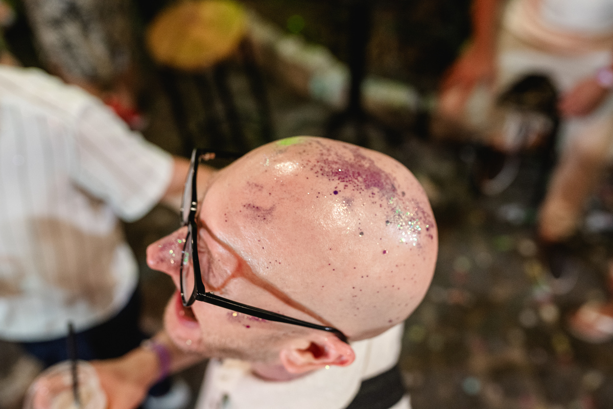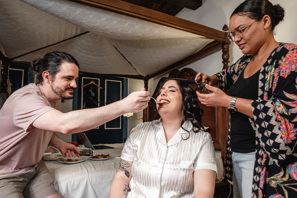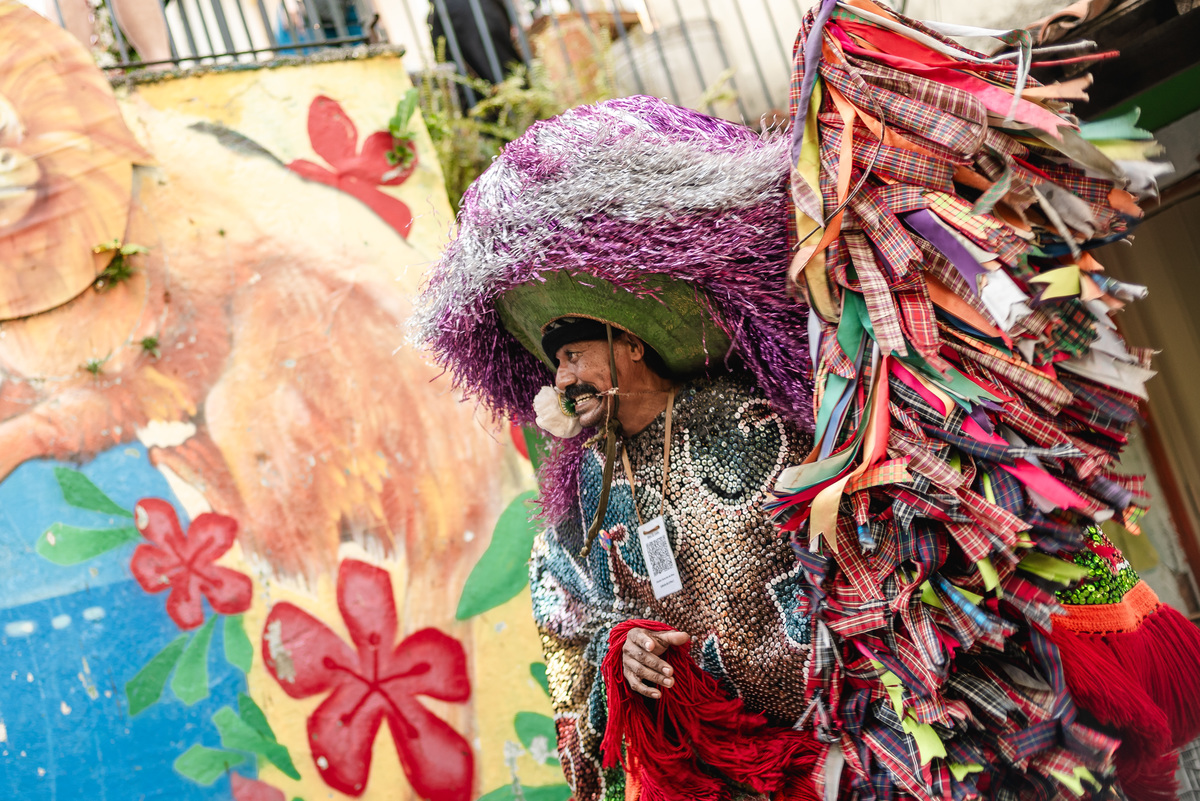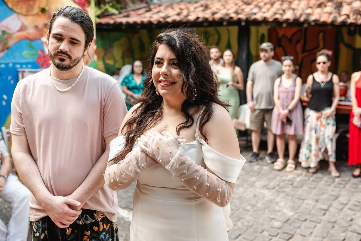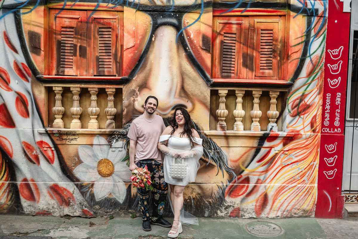 Steph nasceu aqui e é ilustradora, ela ilustrou um cordel customizado com a história deles, painel de boas-vindas, programaçäo da festa e plaquinhas. Teve estandarte customizado, bandeirinhas da artista local Catarina Dee Jah. Uma mesa repleta de glitter, som de maracatu, dançarinos(as) de frevo e bonecos gigantes pra viver Olinda da forma mais massa possível.