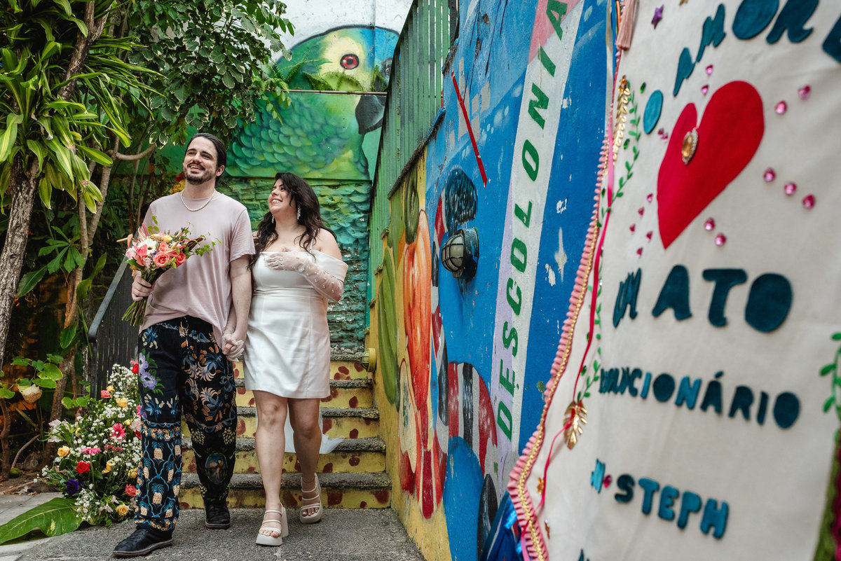 Steph e Joni moram no exterior, então basicamente temos aqui um destination wedding (que por si só traz uma ideia de valorizar o local onde o casamento acontece), mas o foco que eu quero mostrar aqui é a riqueza dos detalhes com a nossa cultura intrínseca neles.